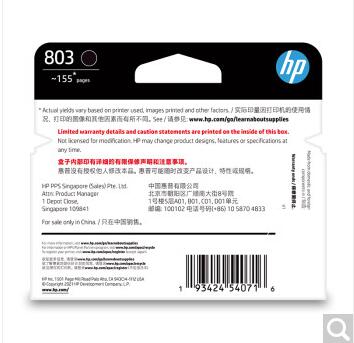 參數(shù) [品牌] 惠普(HP) [型號] 803 [毛重] 40.00g [產(chǎn)地] 中國大陸 [類型] 耗材 [單位] 個